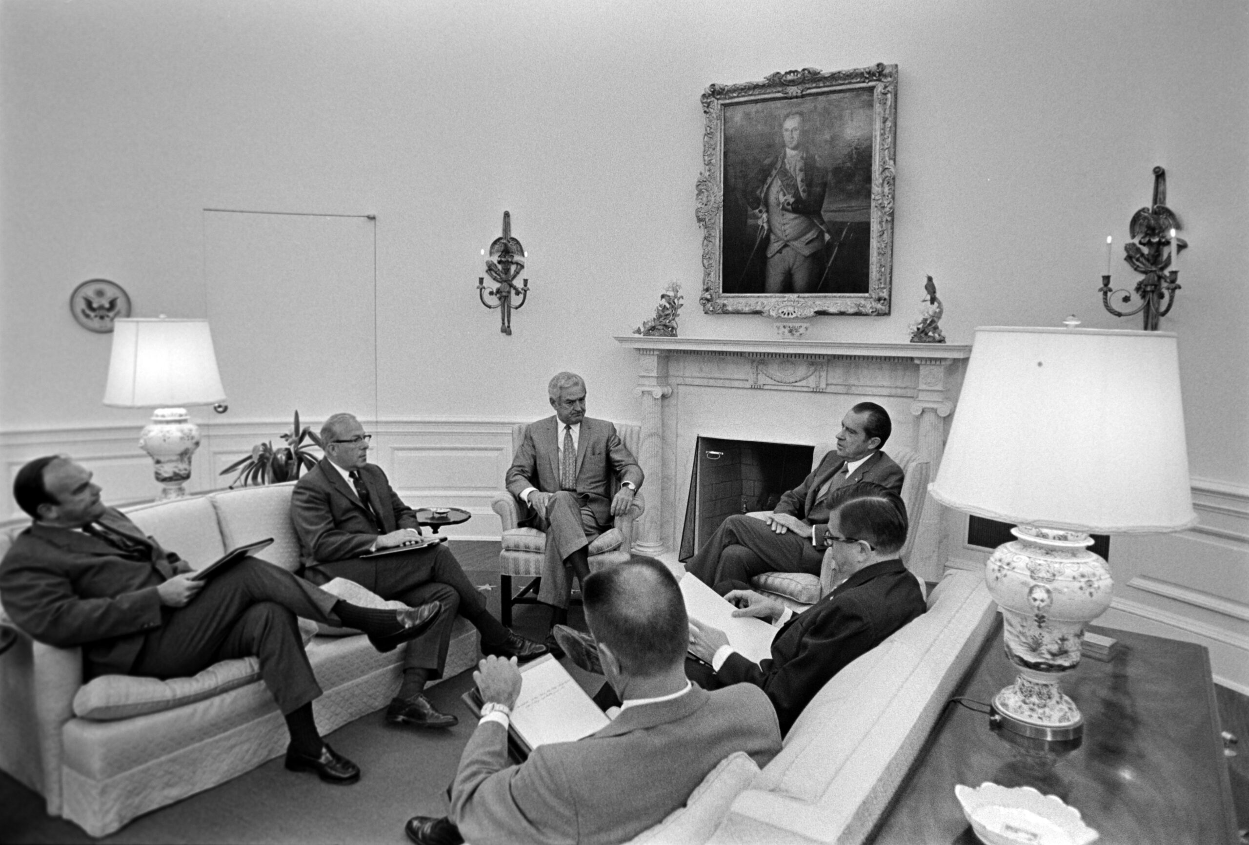 Photo: President Nixon with John Ehrlichman and Moynihan (President Nixon with Ehrlichman and Moynihan_Oval_05_06_69_37-whpo-0972-05a-i-2020-ec)