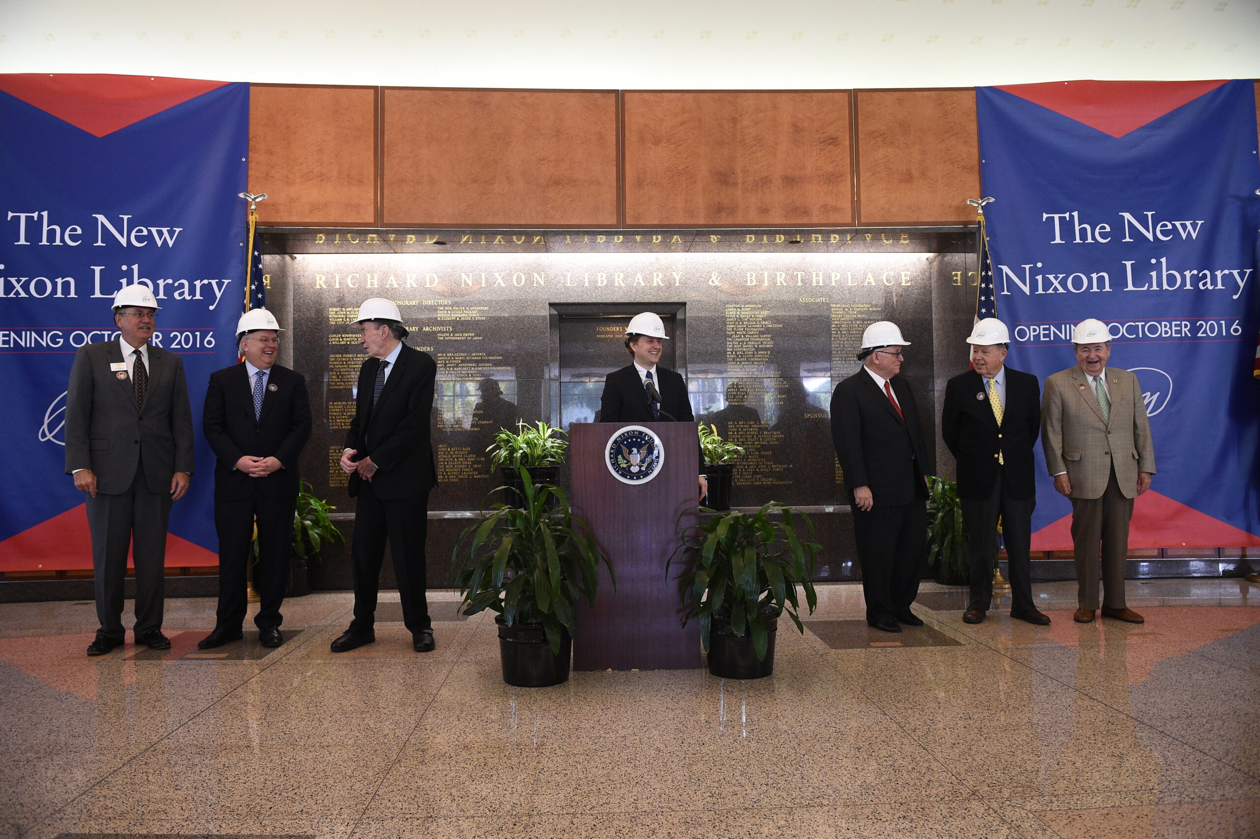 January 9, 2016: The official construction kick off of the new Richard Nixon Presidential Library and Museum with President Nixon’s grandson Christopher Nixon Cox and younger brother Ed Nixon.