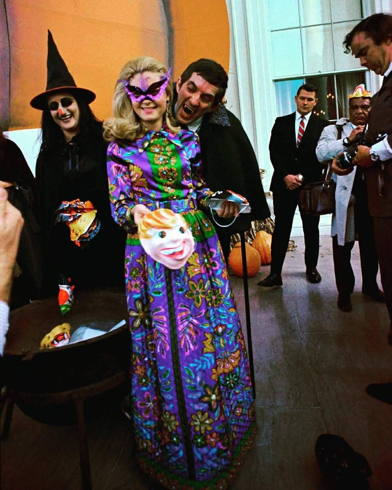 Several years later, Lady Bird Johnson joined an informal Halloween party attended by her daughter Luci, where all the guests donned commercial masks for a photo. At the time, however, no photographs of the First Families or news about their events of October 31 were made public.
