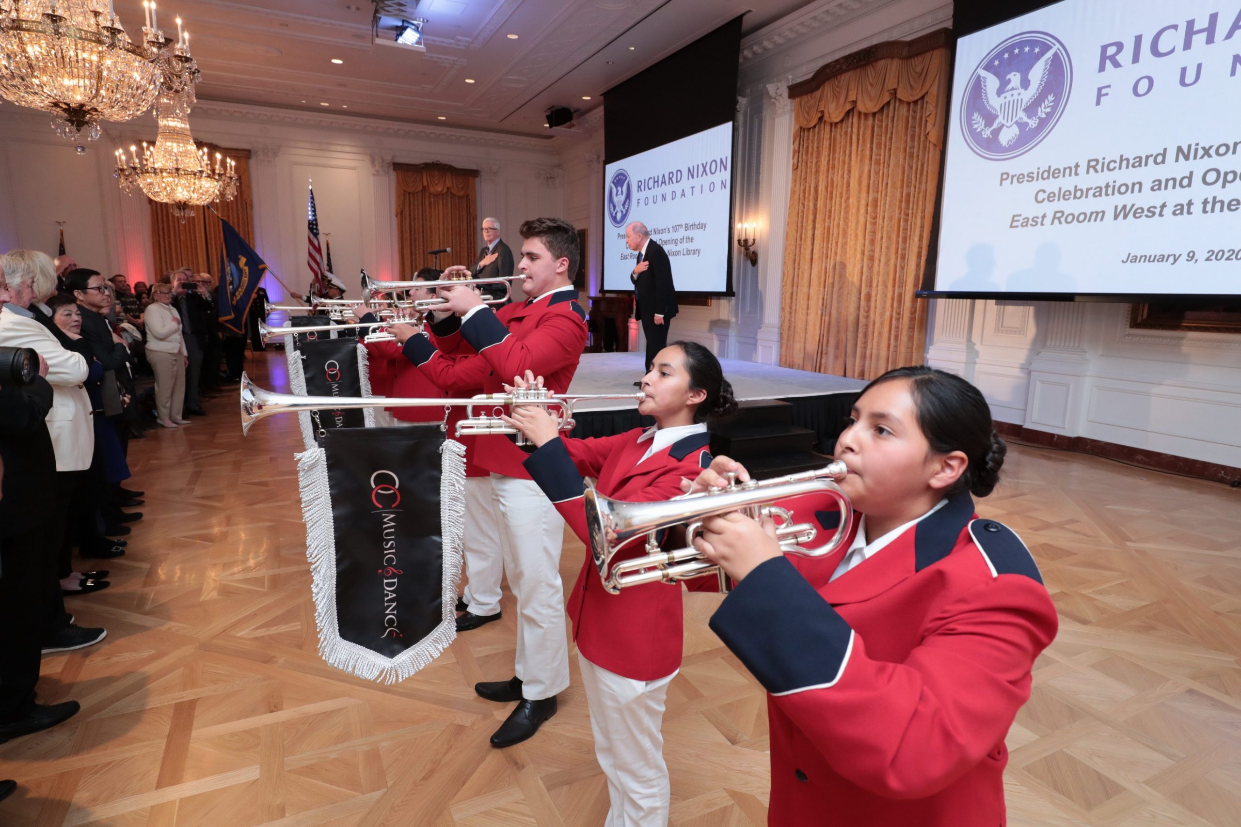 The East Room West was unveiled on January 9, in celebration of the 107th anniversary of President Nixon’s birth. The opening ceremony was led by Foundation President Hugh Hewitt and included remarks from White House Curator Bill Allman, followed by singing, dance, and instrumental performances from some of Orange County’s most promising young artists. This premiere performance in the East Room West was delivered by Orange County Music and Dance.