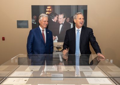 Prior to this discussion, Leader McCarthy was given a tour of the Nixon Library including the special exhibit, “The Presidents Club,” where he and Ambassador O’Brien were able to see letters exchanged between former President Nixon and future President Trump.