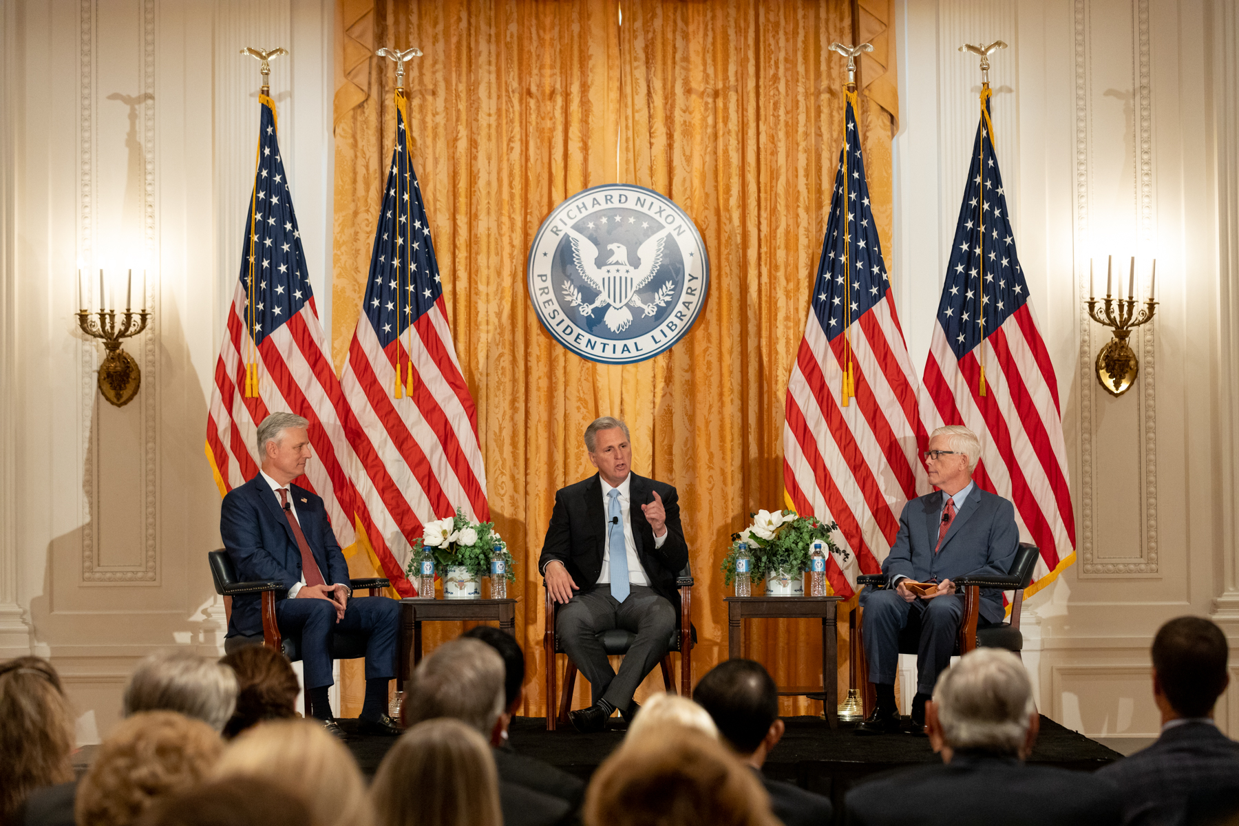 Yesterday the Nixon Foundation was honored to have House GOP Leader Kevin McCarthy and former National Security Advisor and Co-Chair of the Nixon Seminar Robert O’Brien speak in the East Room of the Nixon Library.