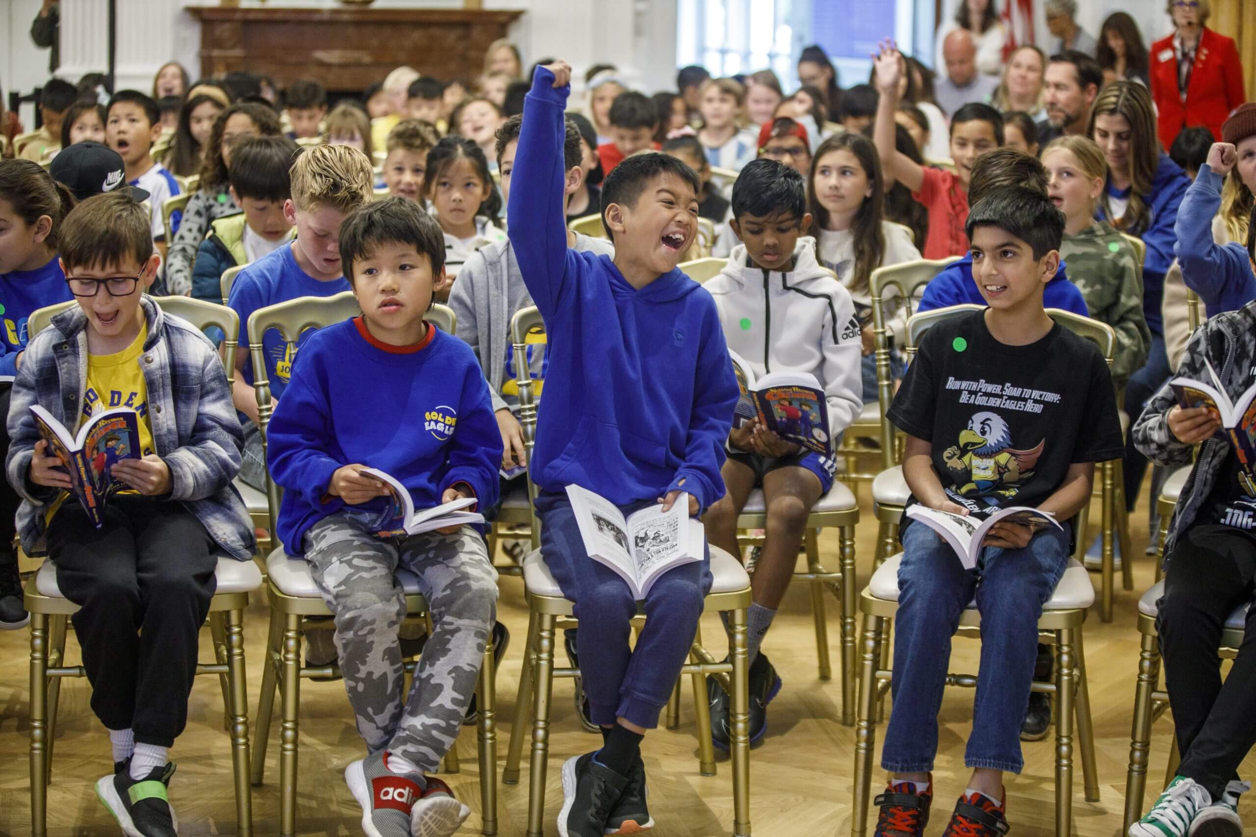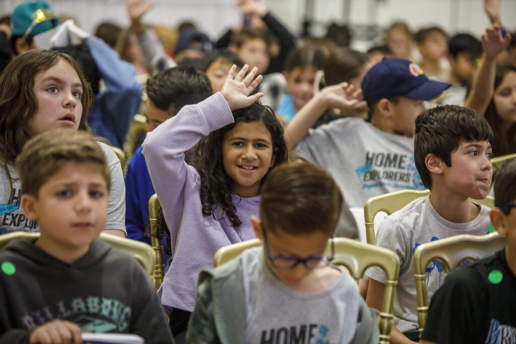 Enthusiastic cheers of “OC” rang out in the East Room of the Nixon Library Thursday morning as more than 350 local third graders participated in an interactive journey through Orange County’s history. An additional 10,000 third graders across the county joined the annual OC Day of History program for a virtual field trip via livestream.