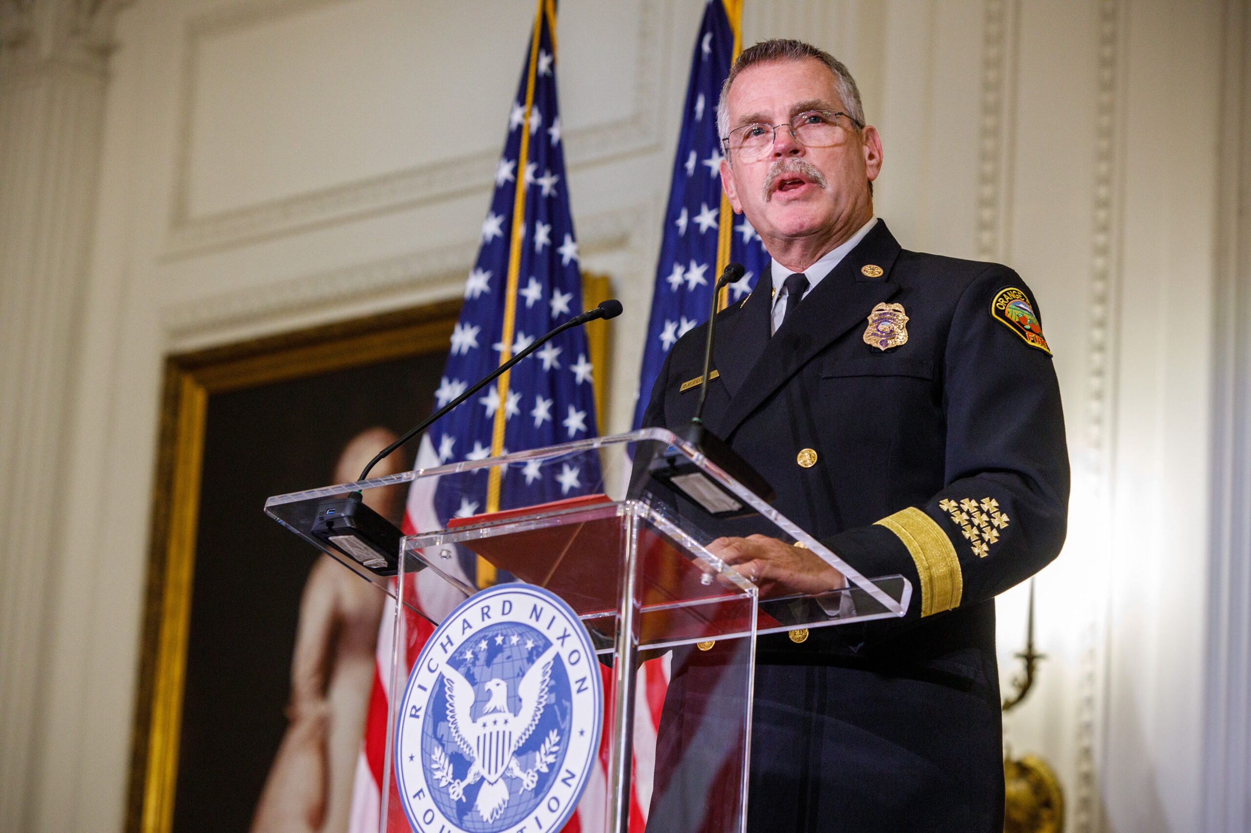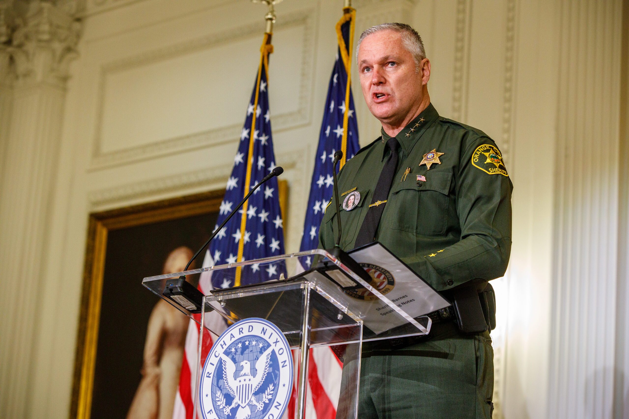 Orange County Sheriff Don Barnes reflected on the nearly 3,000 lives lost, reminding the audience that each victim had a unique story. He emphasized that the phrase “Never again” represents a solemn promise upheld by all who serve in law enforcement.