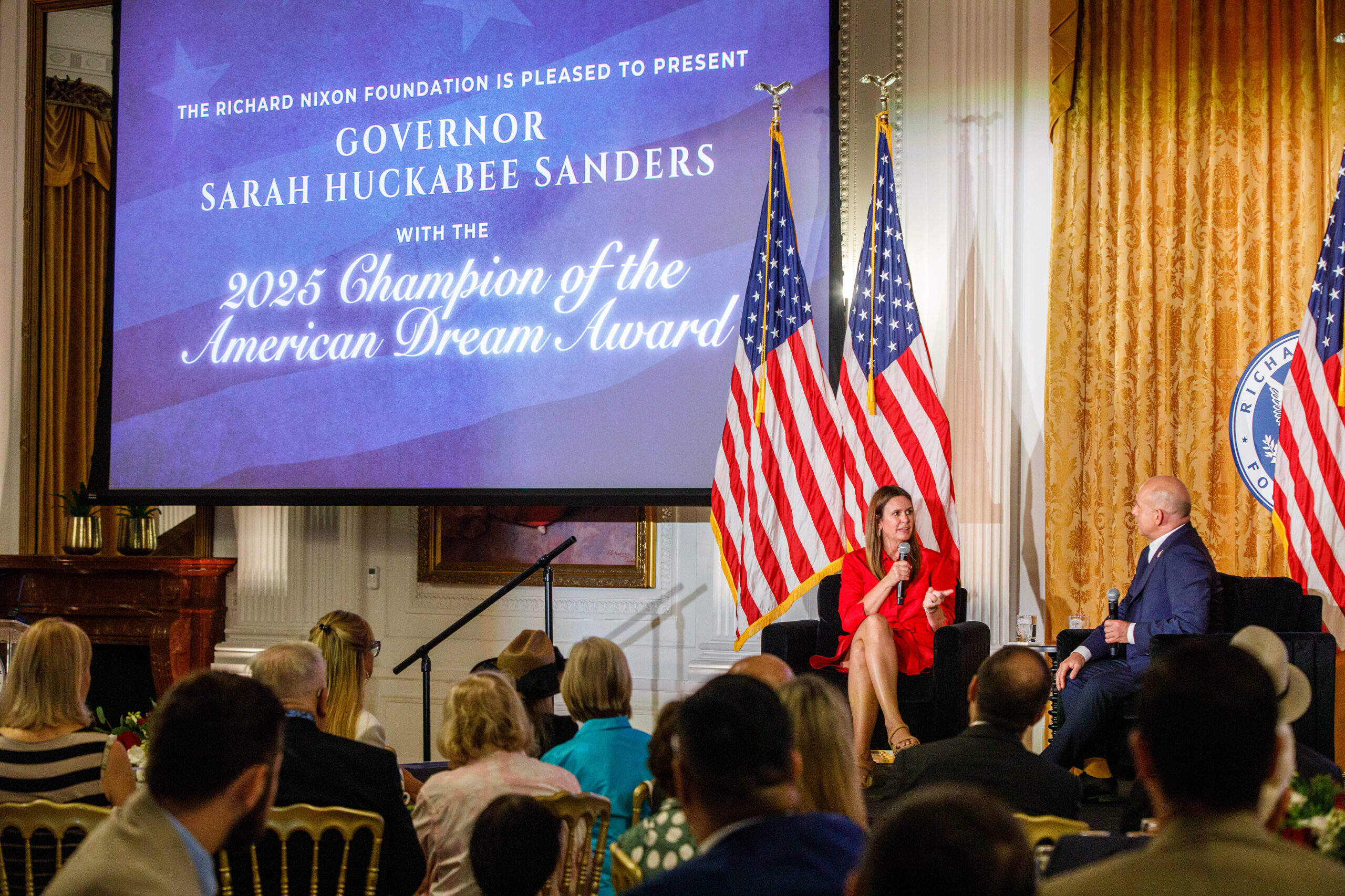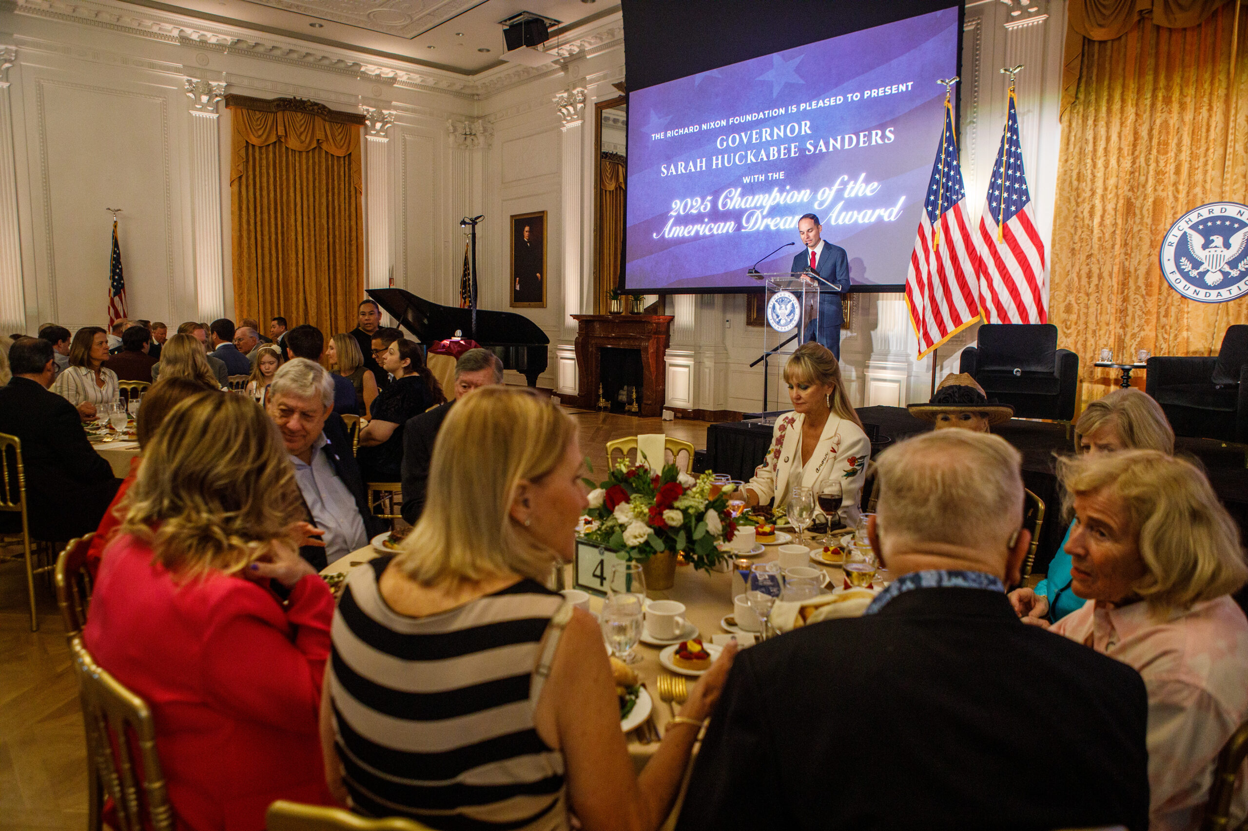 Governor Sarah Huckabee Sanders was presented the Richard Nixon Foundation’s Champion of the American Dream Award at a luncheon ceremony in the Nixon Library’s East Room. The award recognizes Governor Sanders’ courage, clarity and deep commitment to American values demonstrated both in her current role as Governor of Arkansas and formally as White House Press Secretary.